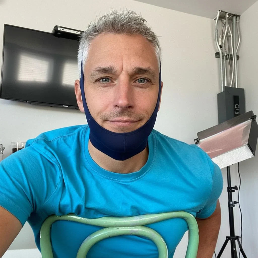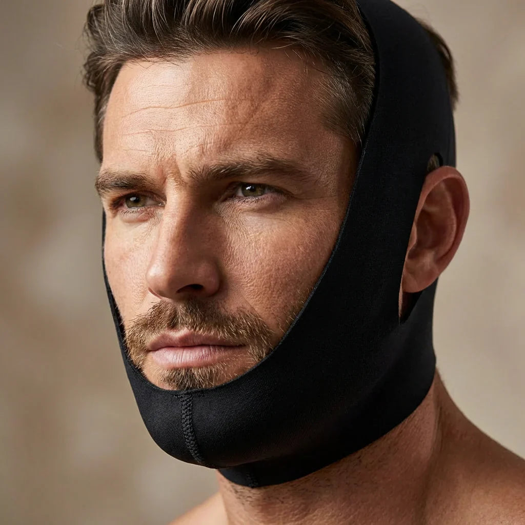 Adjust the straps. Set your comfort. Wear it while you work, relax, or sleep. Lightweight, breathable, and built to stay in place. With consistent use, targeted compression helps the jawline look firmer and more defined.